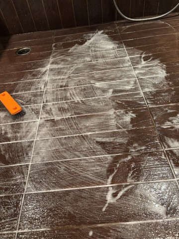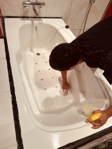 酸性を使用しお風呂の水垢、湯垢、石鹸カスなどを綺麗にしていきます。